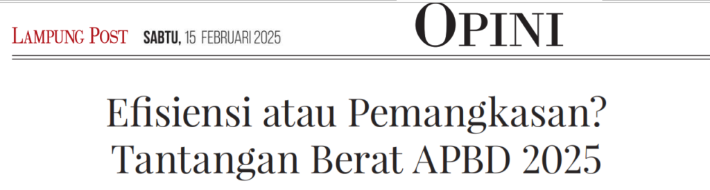 Lampung Post. Presiden Prabowo Subianto telah mengeluarkan Instruksi Presiden (Inpres) 1/2025 dan ditindaklanjuti dengan Keputusan Menteri Keuangan (KMK) 29/2025 tentang efisiensi belanja negara sebesar Rp306,69 triliun termasuk memangkas Transfer ke Daerah sebesar Rp50,59 triliun. Bagi pemerintah daerah (pemda) kebijakan ini menjadi tantangan berat dalam menjalankan APBD 2025.